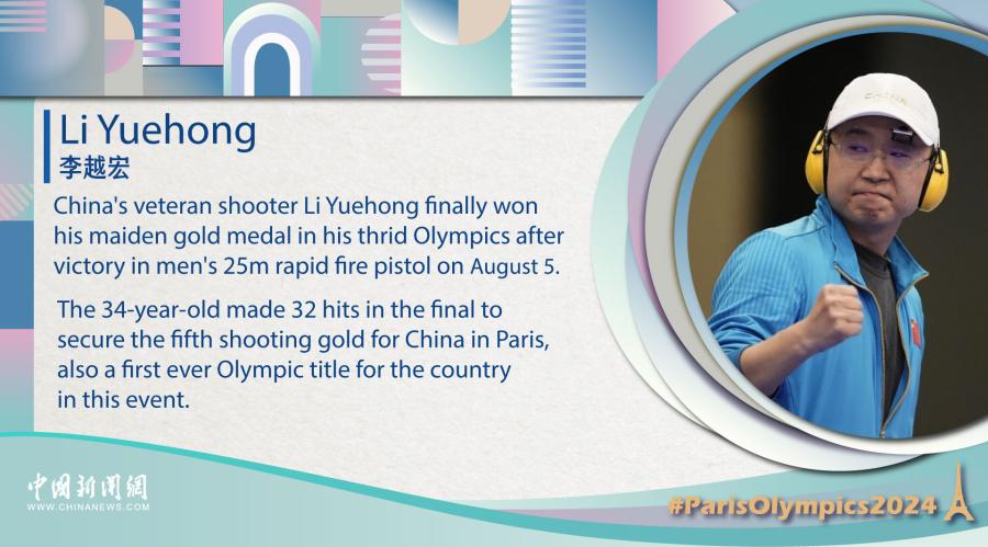 China's veteran shooter Li Yuehong finally won his maiden gold medal in his thrid Olympics after victory in men's 25m rapid fire pistol on Monday.