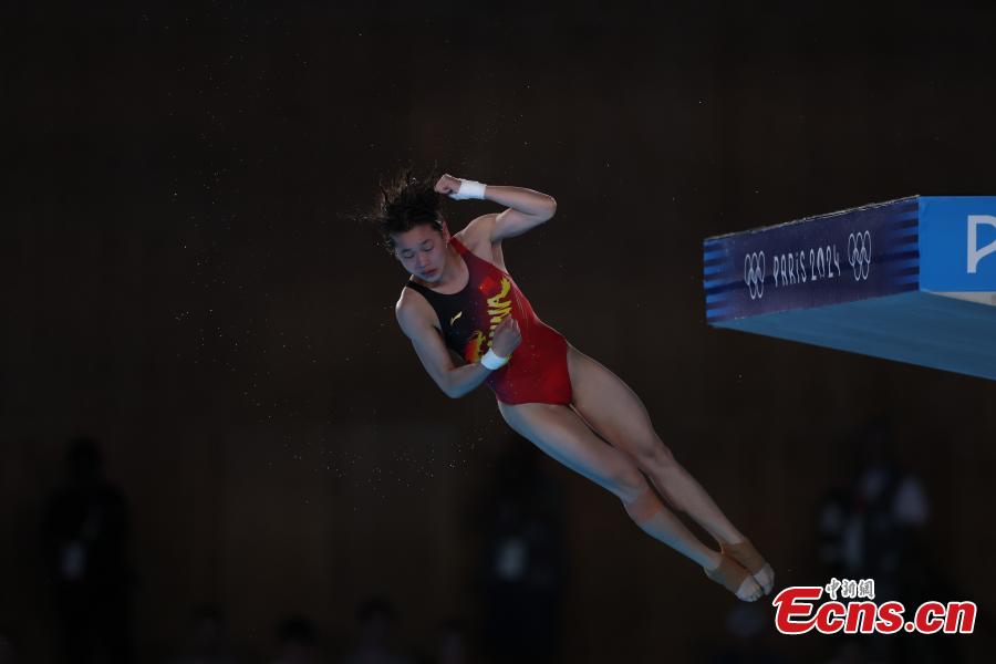Quan Hongchan of China competes during the women's 10m platform final of diving at the Paris 2024 Olympic Games in Saint-Denis, France, Aug. 6, 2024. (Photo: China News Service/Fu Tian)