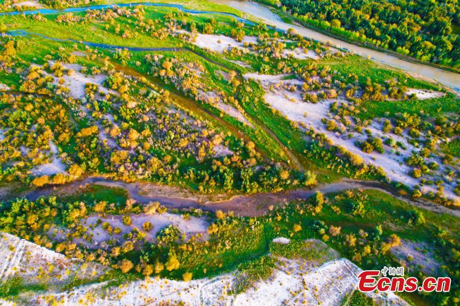 Picturesque landscape of Tuoshigan River National Wetland Park in Wushi County of Aksu Prefecture, northwest China's Xinjiang Uygur Autonomous Region, Aug. 12, 2024. (Photo/VCG)