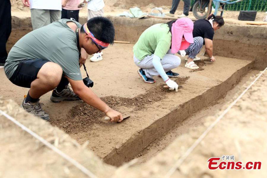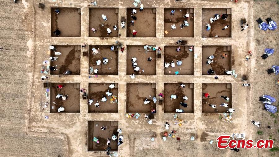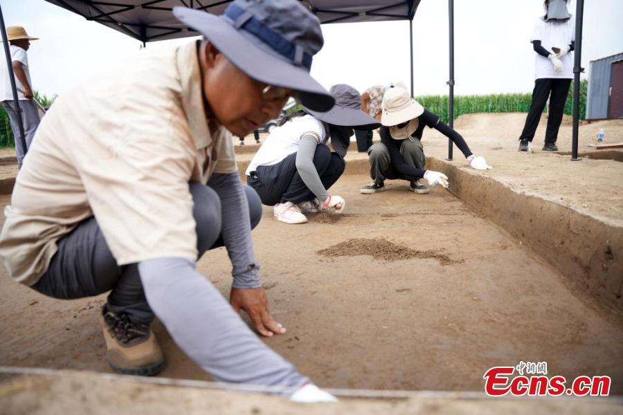 Archaeologists work at the excavation site of Bairen Town ruins in Longyao County of Xingtai City, central China's Hebei Province, Aug. 14, 2024. (Photo: China News Service/Zhang Ling)