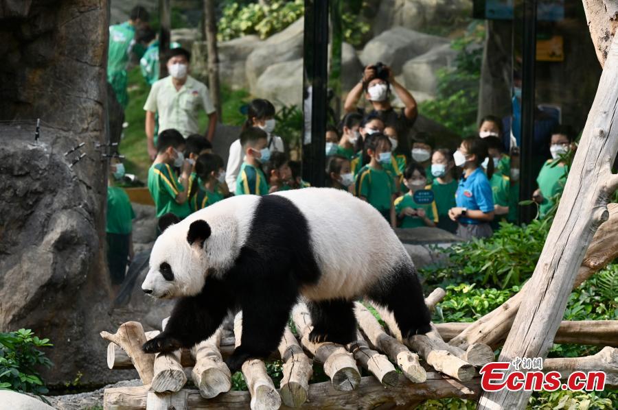File photo shows giant panda Ying Ying playing at Ocean Park, the Hong Kong Special Administrative Region. (Photo: China News Service/Li Zhihua)