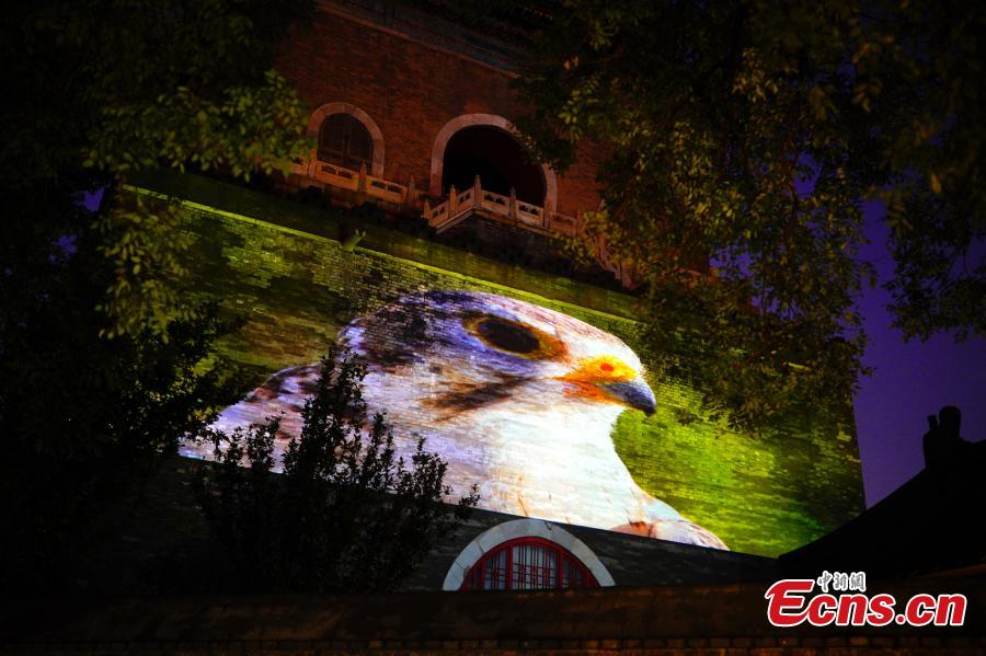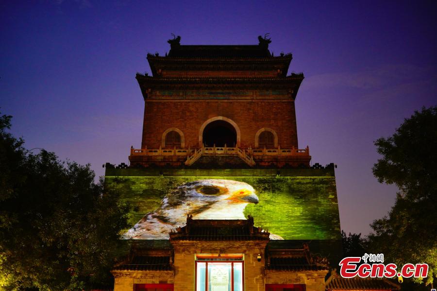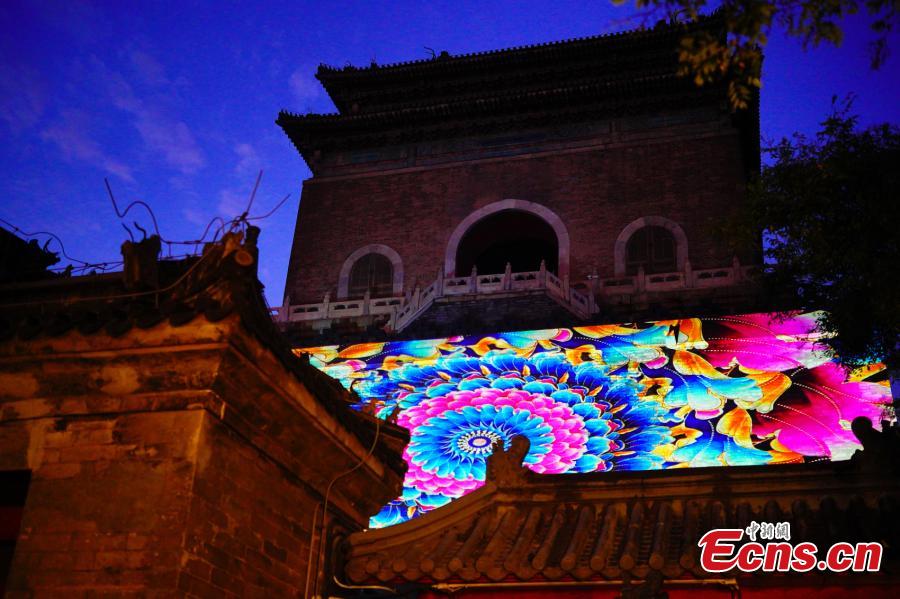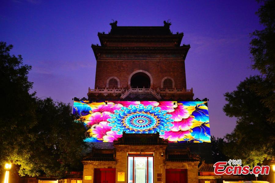 A spectacular light show is staged on the Bell Tower on the northern tip of the Beijing Central Axis to showcase the charm of the ancient capital, Beijing, Aug. 15, 2024. (Photo/VCG)