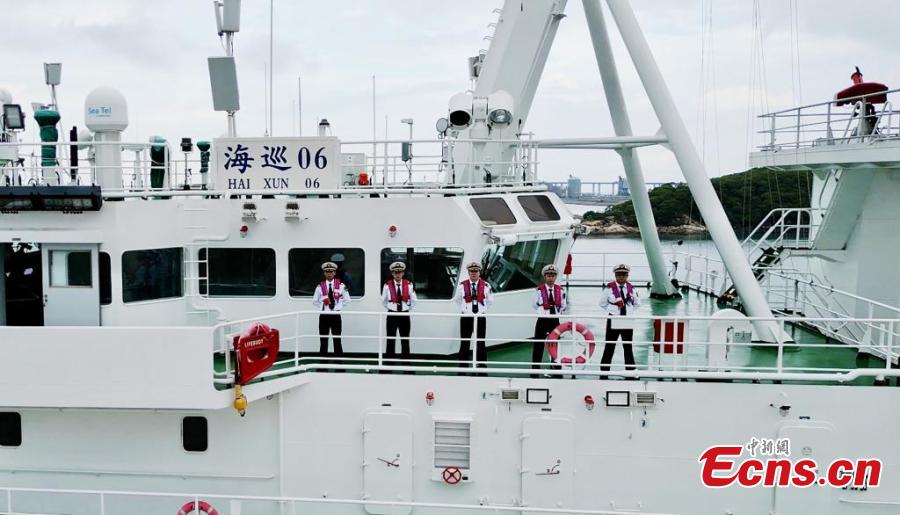 Crew members stand on the deck of the patrol vessel Haixun 06 in the waters of the Taiwan Strait, Aug. 17, 2024. (Photo provided to China News Service)