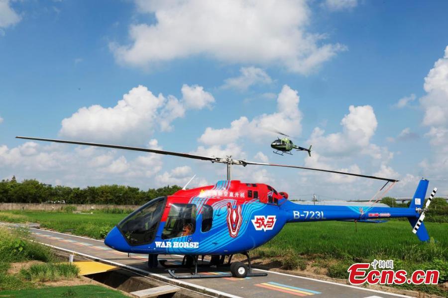 A helicopter lands at the Xingye aviation base in Pudong, Shanghai, Aug. 18, 2024. (Photo: China News Network/Yin Liqin)