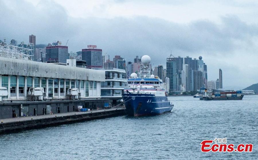 Xiamen University's research vessel Tan Kah Kee docks at the Tsim Sha Tsui Pier in the Hong Kong Special Administrative Region, Aug. 18, 2024. (Photo: China News Network/Hou Yu)