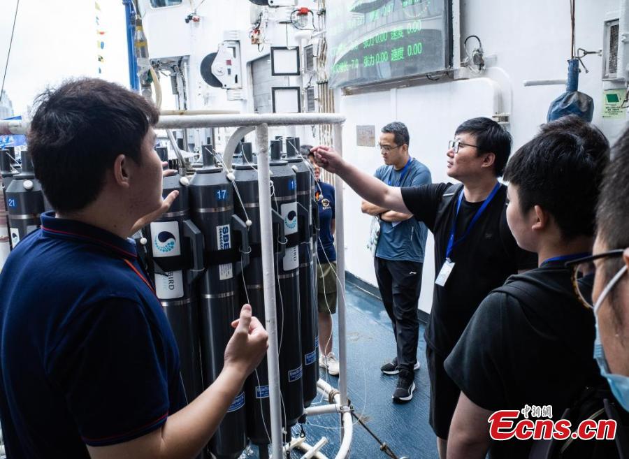 People visit the research vessel Tan Kah Kee docked at the Tsim Sha Tsui Pier in the Hong Kong Special Administrative Region, Aug. 18, 2024. (Photo: China News Network/Hou Yu)