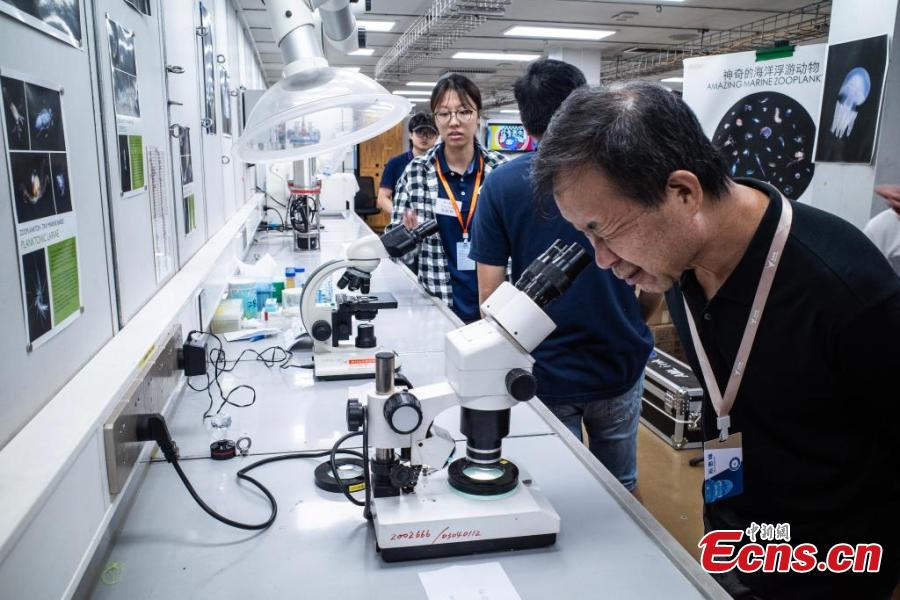 With a total length of 77.7 meters and a displacement of 3,611 metric tons, Xiamen University's research vessel Tan Kah Kee was put into operation in April 2017 to commemorate Tan Kah Kee, founder of the university. It opened for visitors in Hong Kong from Aug. 17 to 19.