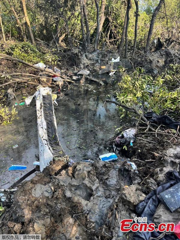 Aircraft wreckage is seen at the crash site in Chachoengsao province, Thailand, Aug. 22, 2024. (Photo/Agencies)
