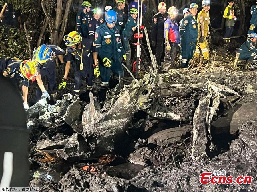 Rescuers work at the site of a small plane crash in Chachoengsao province, Thailand, Aug. 23, 2024. (Photo/Agencies)