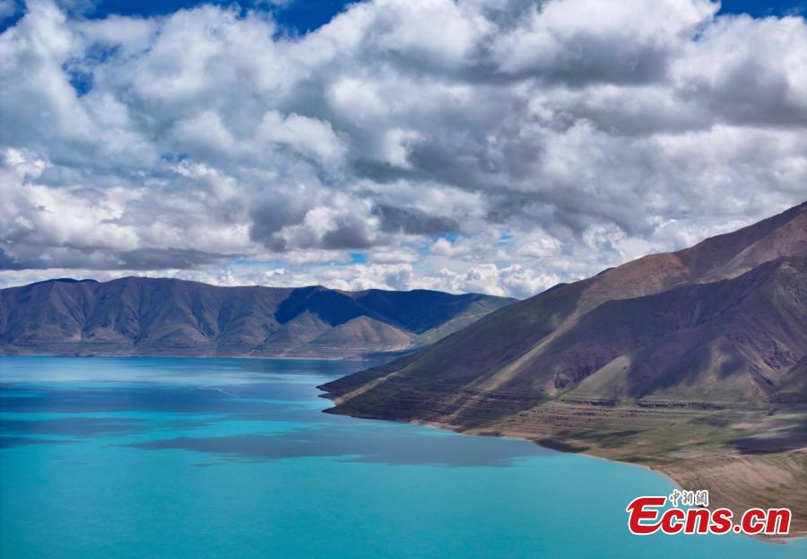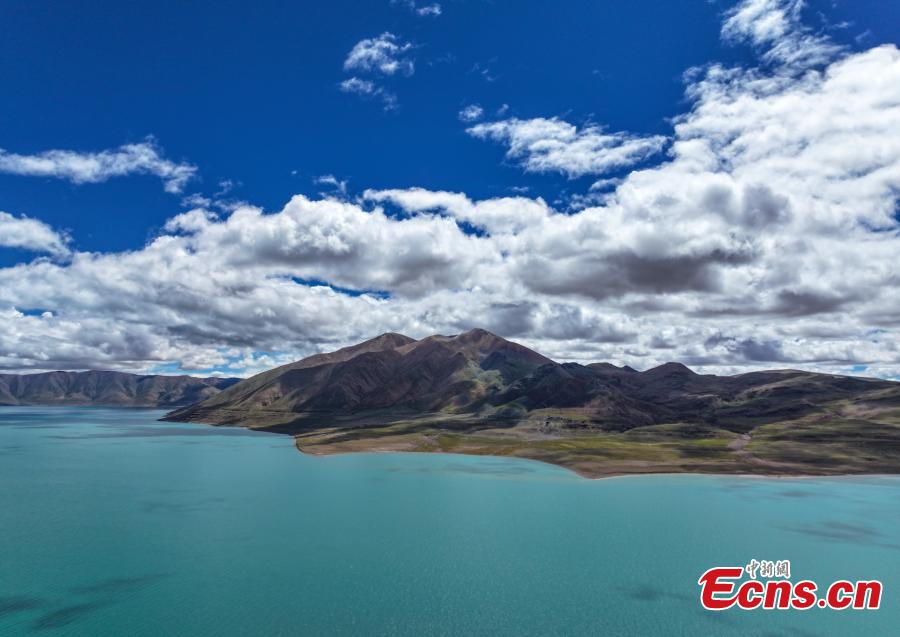 Tangra Yumco Lake is picturesquely framed with snow-capped mountains in the background in Nyima County of Nagqu, southwest China's Xizang Autonomous Region. (Photo/VCG)