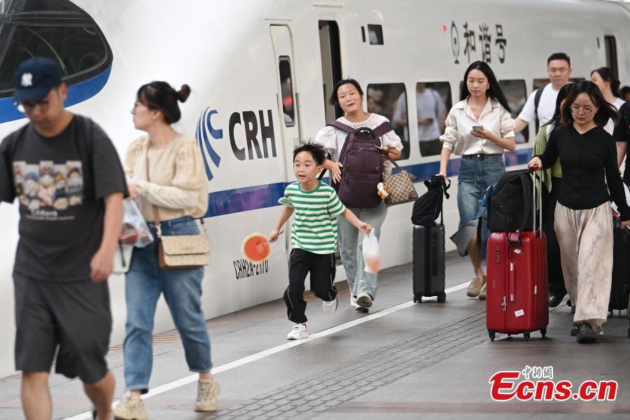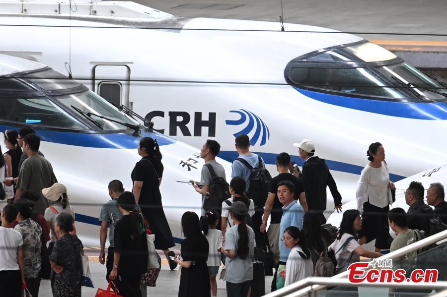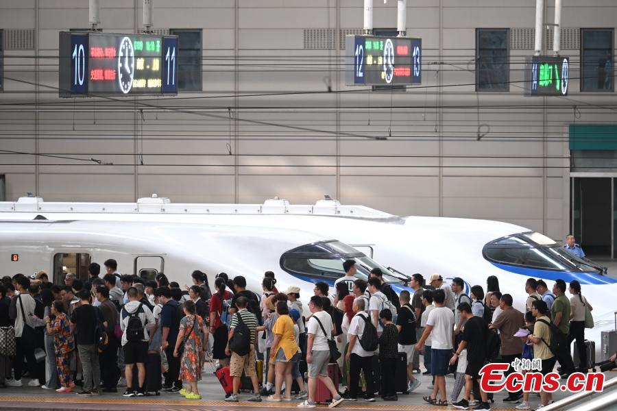 Passengers line up to board a high-speed train in Nanjing, east China's Jiangsu Province, Aug. 26, 2024. (Photo: China News Service/Yang Bo)