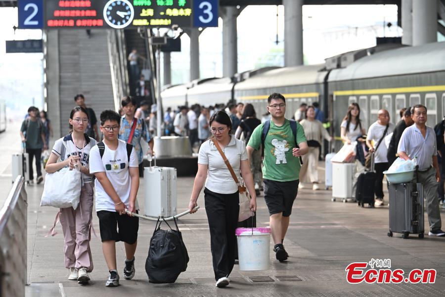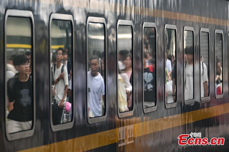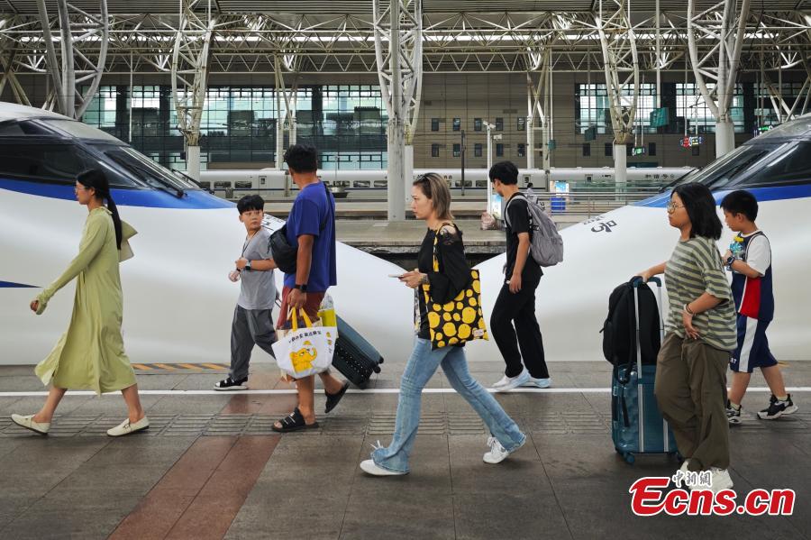Passengers walk on the platform at a railway station in Nanjing, east China's Jiangsu Province, Aug. 26, 2024. (Photo: China News Service/Yang Bo)