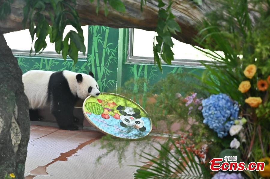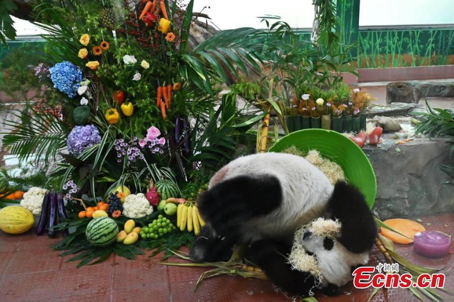 A birthday party is held for giant panda Xing Yi and Ya Yi at Guangzhou Zoo in south China's Guangdong Province, Aug. 27, 2024. (Photo: China News Service/Chen Chuhong)