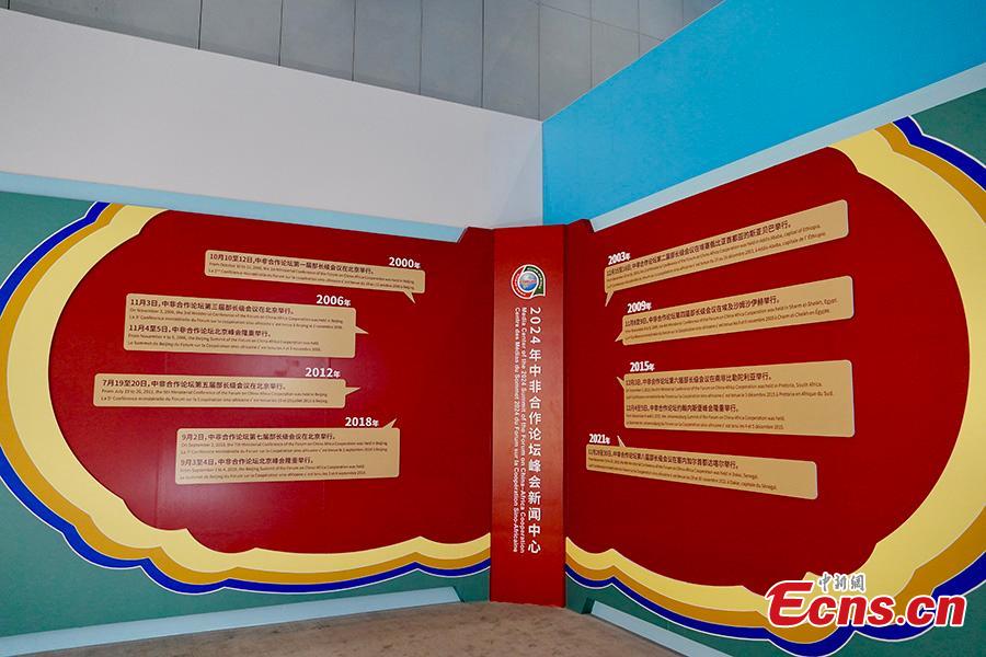 This photo taken on Sept. 5, 2024 shows the history of the Forum on China-Africa Cooperation (FOCAC) held in the past. (Photo: China News Network/Zhao Li)