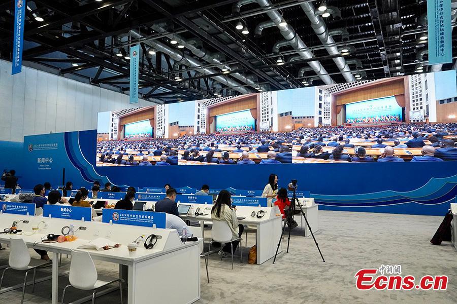 This photo taken on Sept. 5, 2024 shows the media center of the 2024 Summit of the Forum on China-Africa Cooperation (FOCAC) in Beijing. (Photo: China News Network/Zhao Li)
