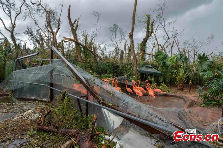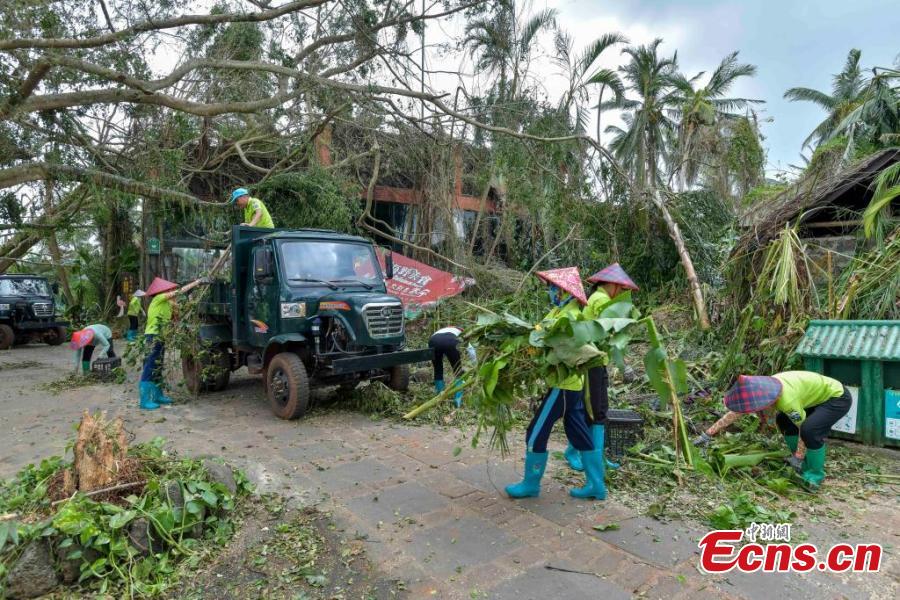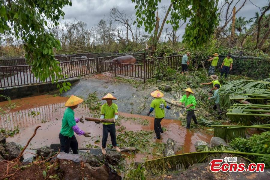 Staff members clean up at Hainan Tropical Wildlife Park and Botanical Garden in Haikou, south China's Hainan Province, Sept. 9, 2024. (Photo: China News Service/Luo Yunfei)