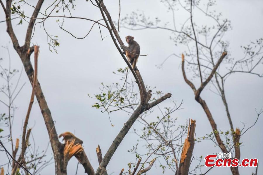 A monkey rests on a tree branch at Hainan Tropical Wildlife Park and Botanical Garden in Haikou, south China's Hainan Province, Sept. 9, 2024. (Photo: China News Service/Luo Yunfei)