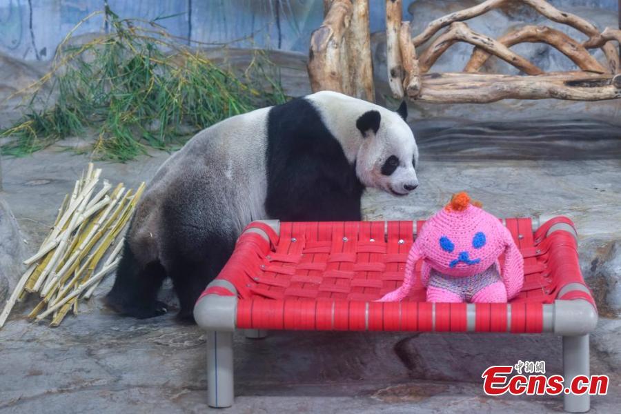 Giant panda Shun Shun plays at Hainan Tropical Wildlife Park and Botanical Garden in Haikou, south China's Hainan Province, Sept. 9, 2024. (Photo: China News Service/Luo Yunfei)