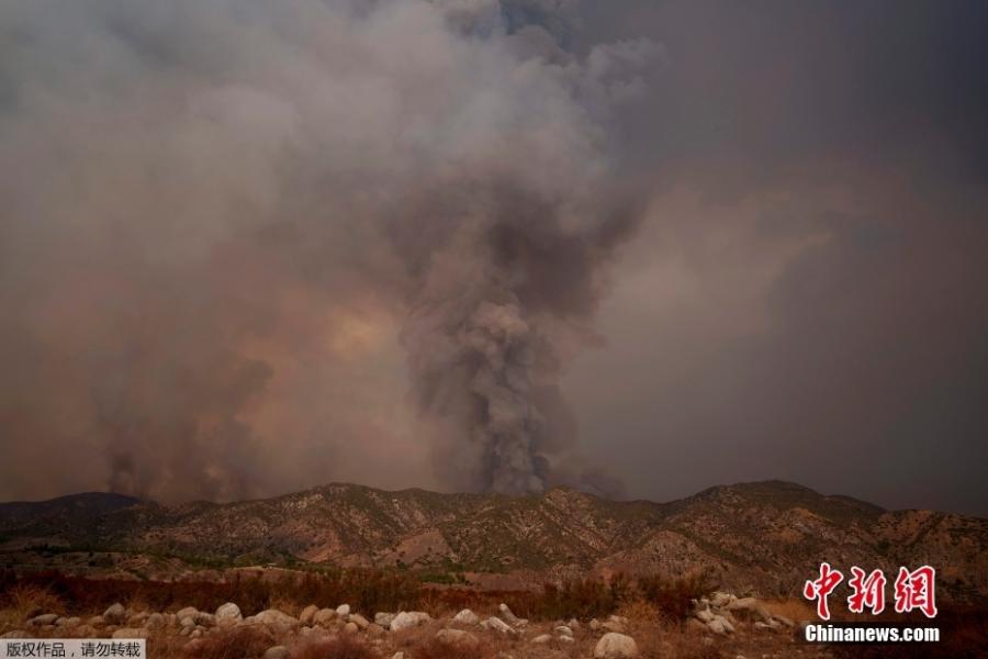 Heavy smoke billows from mountains in the San Bernardino National Forest's mountains over Highland, California, the United State, Sept. 8. (Photo/Agencies)