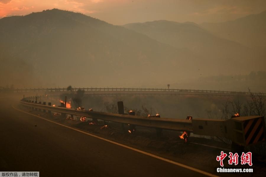 Line Fire burns in the mountains in the San Bernardino National Forest's mountains over Highland, California, the United State, Sept. 8. (Photo/Agencies)