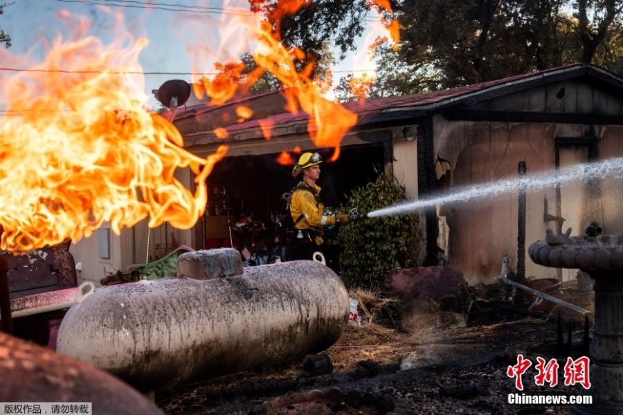 Firefighters battle the fire in the San Bernardino National Forest's mountains over Highland, California, the United State, Sept. 8. (Photo/Agencies)