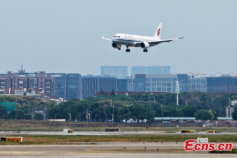 Air China's first C919 aircraft prepares to land at Shanghai Hongqiao International Airport, Sept. 10, 2024. (Photo: China News Service/Yin Liqin)