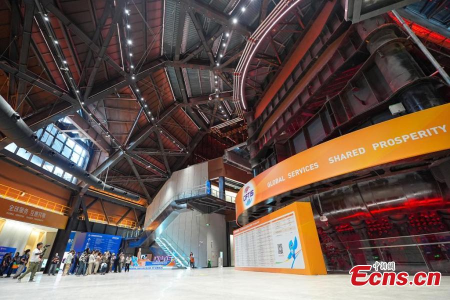 An exhibition area at the Shougang Park, venue of the 2024 China International Fair for Trade in Services in Beijing, Sept. 11, 2024. (Photo: China News Service/Zhao Wenyu)