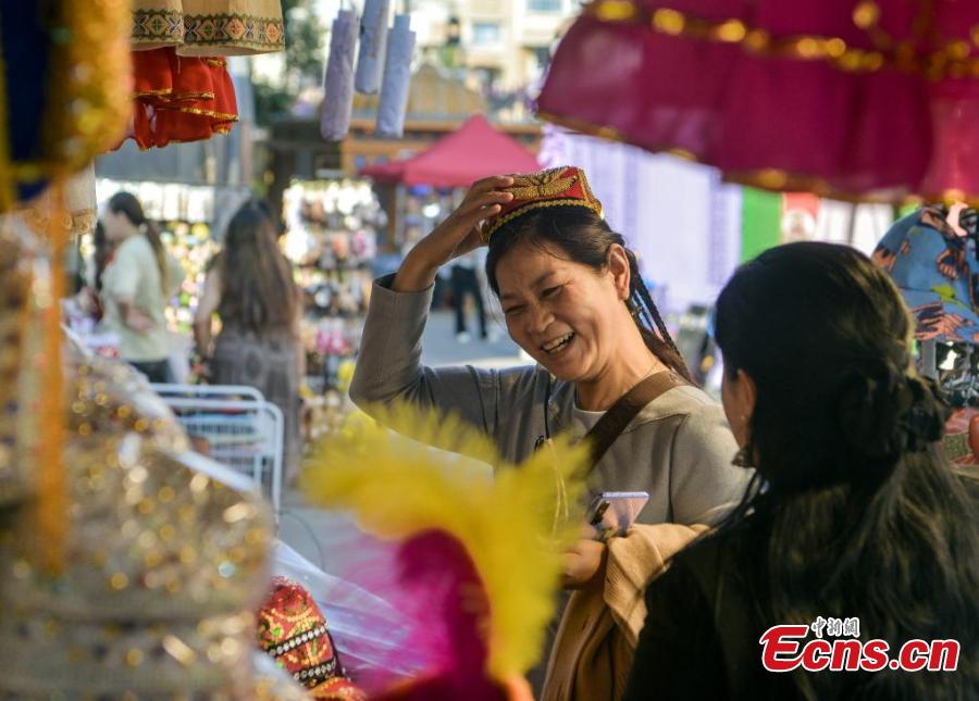 Tourists visit the Xinjiang International Grand Bazaar in Urumqi, northwest China's Xinjiang Uyghur Autonomous Region, Sept. 12, 2024. (Photo: China News Service/Liu Xin)