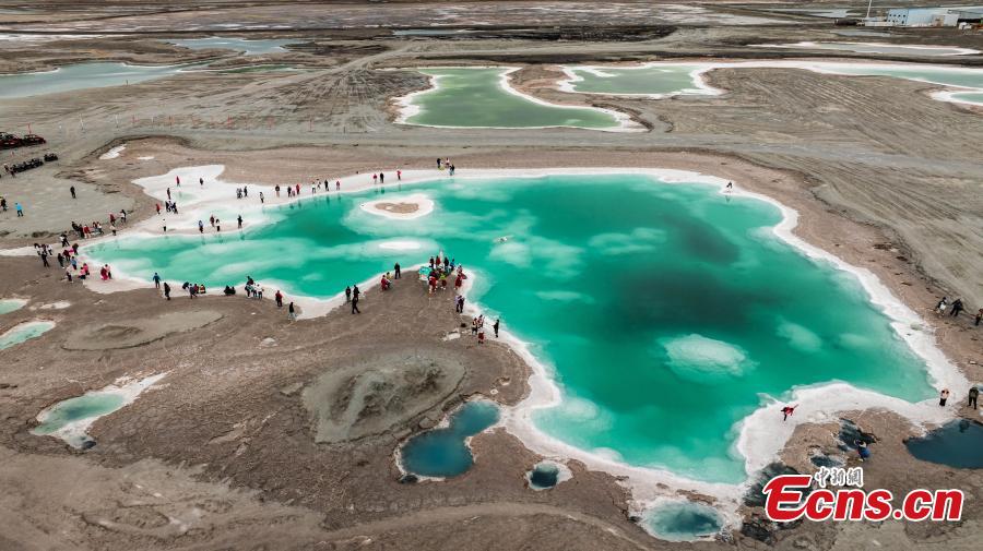 Emerald Lake is a subtype of a magnesium sulfate salt lake, with varying forms and depths of salt pools resembling sparkling and translucent "jade" on Qaidam Basin in Haixi Mongol and Tibetan Autonomous Prefecture, northwest China's Qinghai Province, Sept. 12, 2024. (Photo/ICphoto)