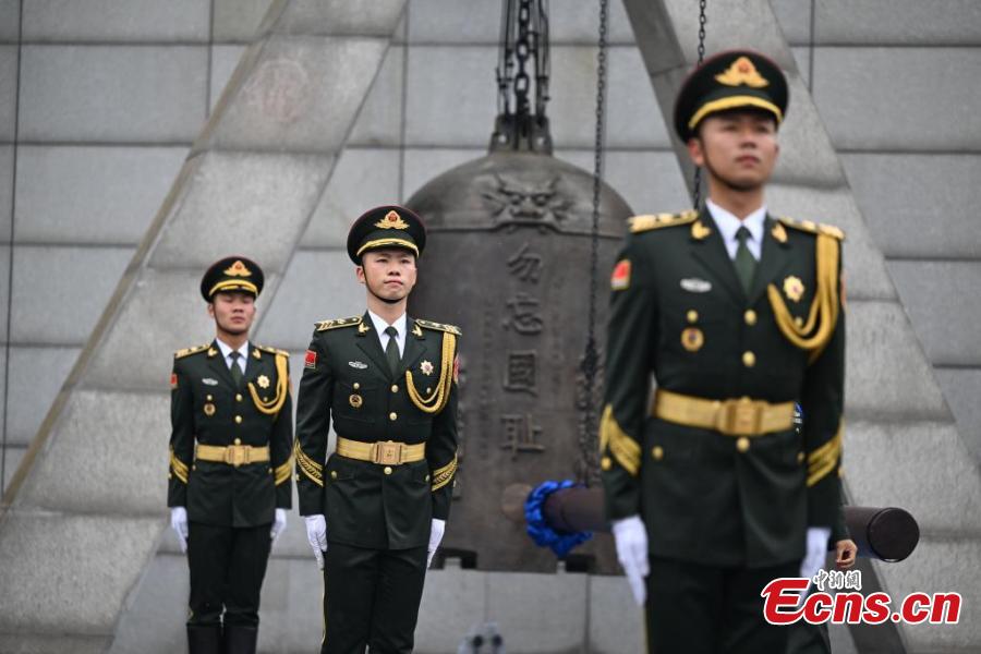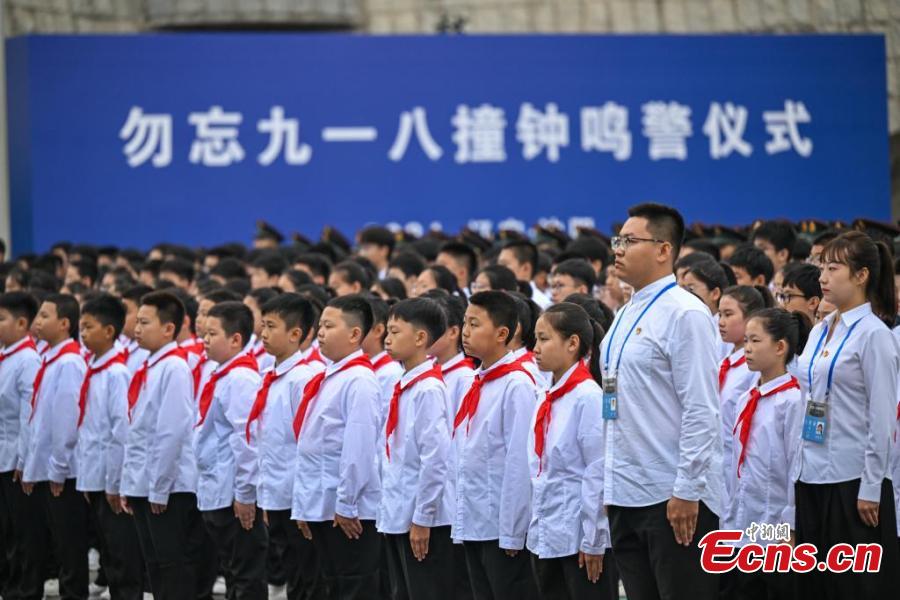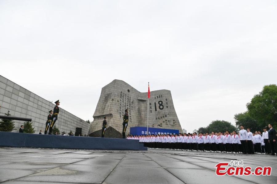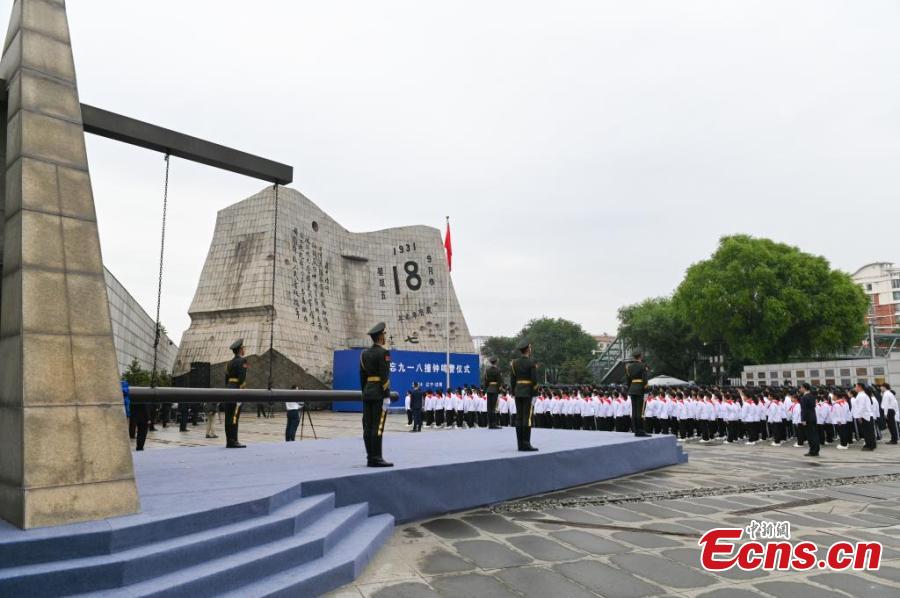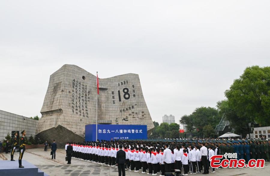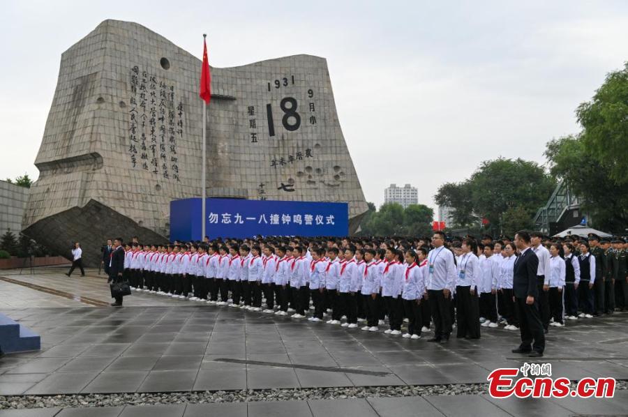 People attend a ceremony to commemorate the September 18 Incident and the Chinese People's War of Resistance against Japanese Aggression at the 9.18 Historical Museum in Shenyang, northeast China's Liaoning Province, Sept. 18, 2024. (Photo: China News Service/Yu Haiyang)