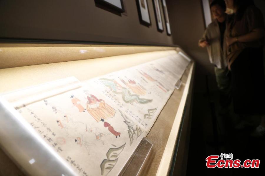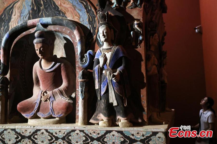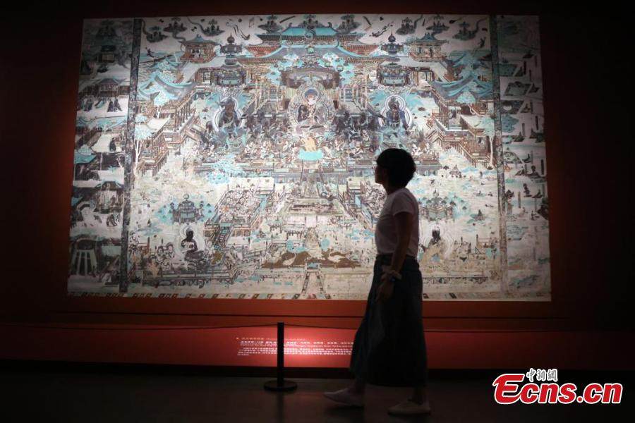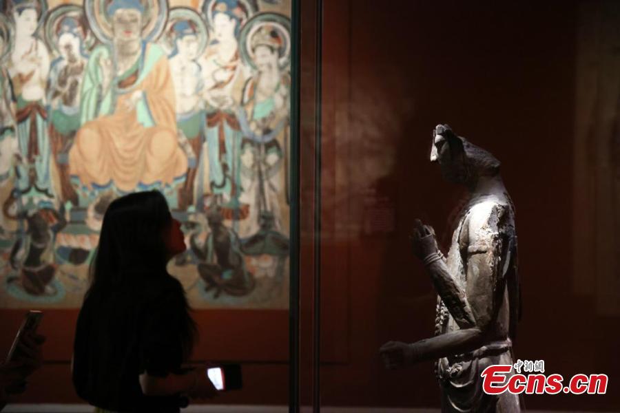 Artifacts from the Dunhuang Caves are displayed during a special exhibition at China Art Museum in Shanghai, Sept. 18, 2024. (Photo: China News Service/Tang Yanjun)