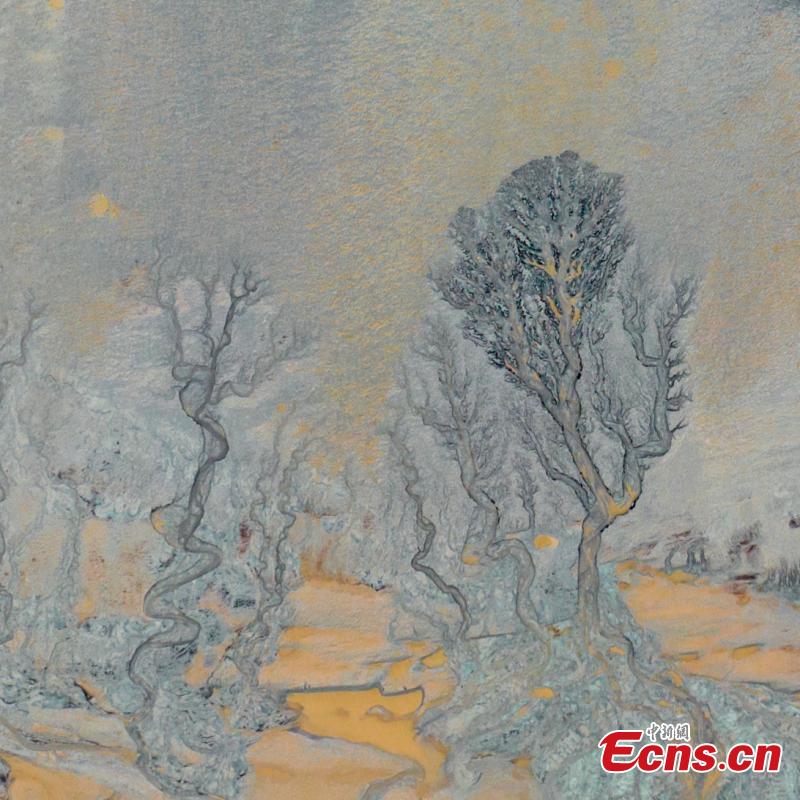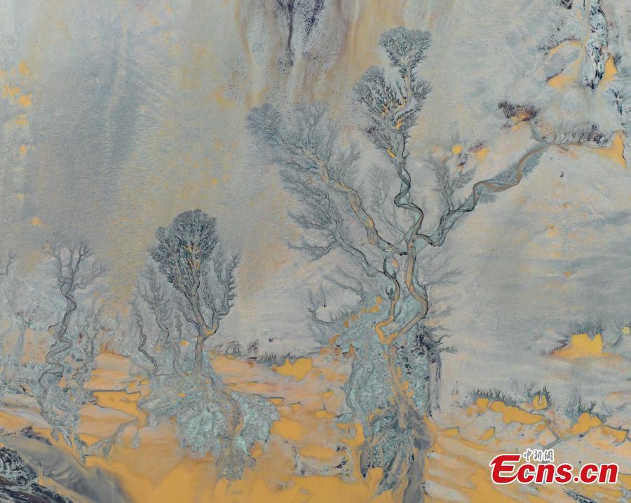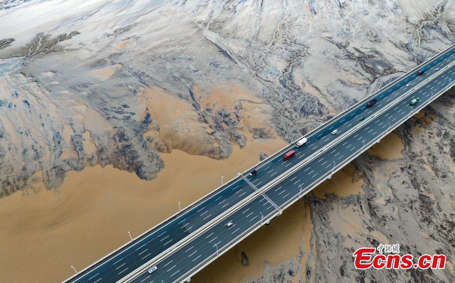 Natural patterns are left on the Qiantang riverbed as tides wash the silt along Qiantang River in Jiaxing, east China's Zehjiang Province, Sept. 21, 2024. (Photo/ICphoto)
