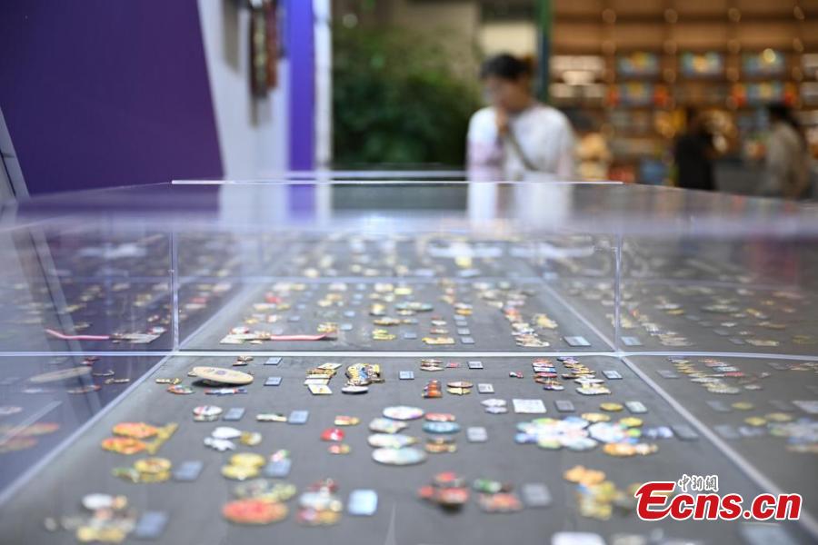 Hangzhou Asian Games featured pins are displayed during a special exhibition to mark the one year anniversary of the Hangzhou Asian Games in Hangzhou, east China's Zhejiang Province, Sept. 23, 2024. (Photo: China News Service/Wang Gang)