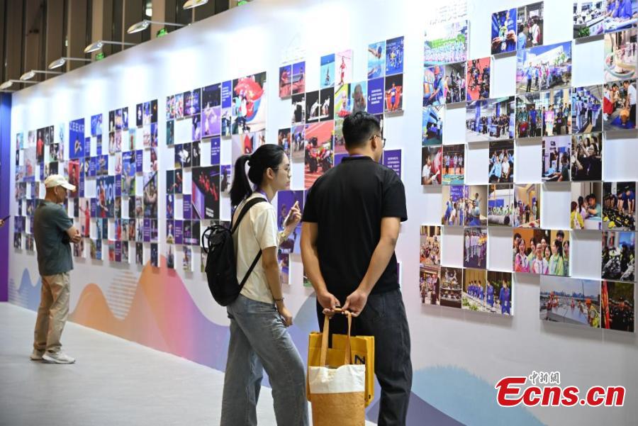 Visitors view a gallery wall during a special exhibition to mark the one year anniversary of the Hangzhou Asian Games in Hangzhou, east China's Zhejiang Province, Sept. 23, 2024. (Photo: China News Service/Wang Gang)