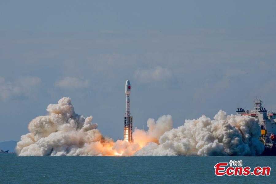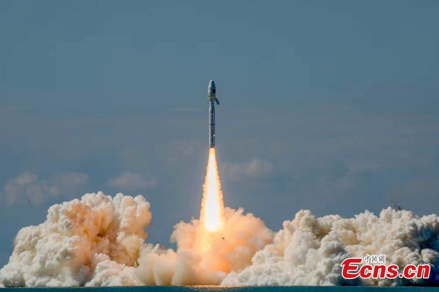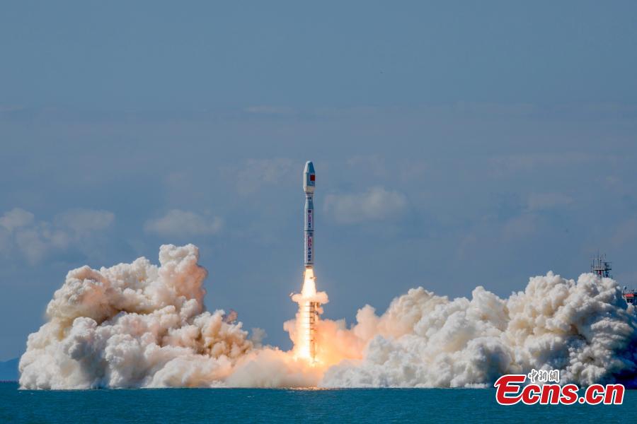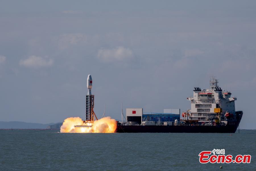 A Smart Dragon 3 carrier rocket carrying Tianyi-41 and other 7 satellites blasts off from the waters near the city of Haiyang in east China's Shandong Province, Sept. 24, 2024. (Photo: China News Service/GuoHouze)
