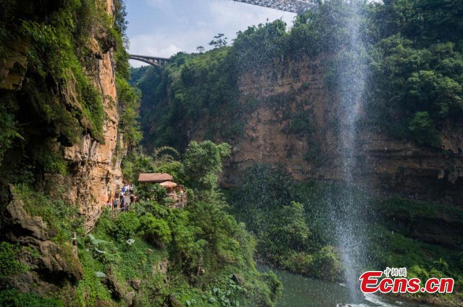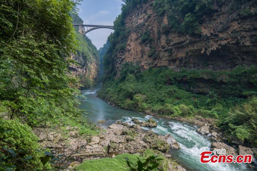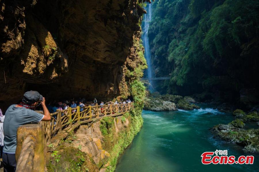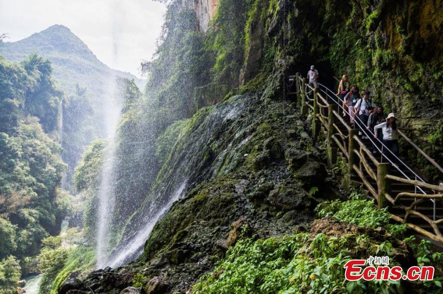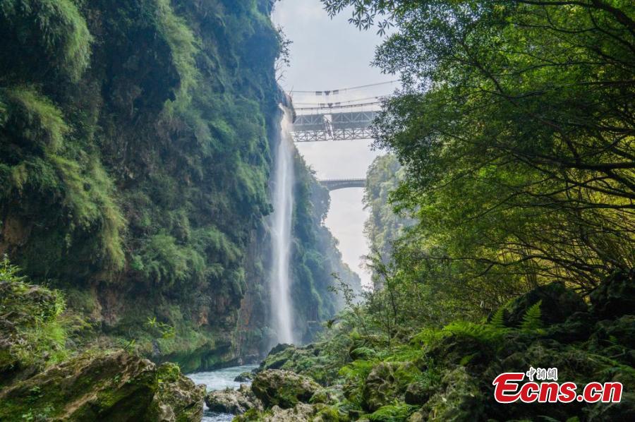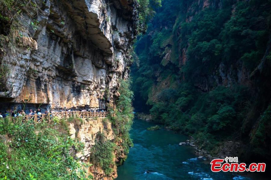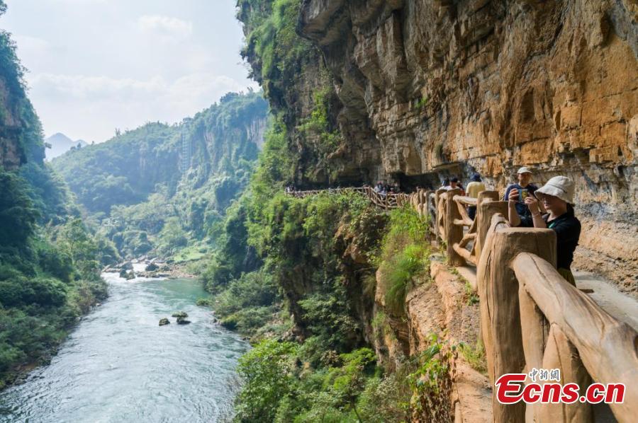 The canyon features waterfalls, deep caves and shaped calcium sediments on both faces of its steep cliffs. The Xingyi UNESCO Global Geopark was officially opened to the public on Tuesday.