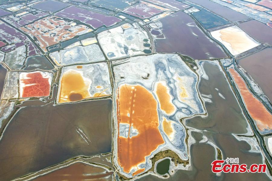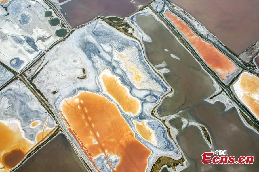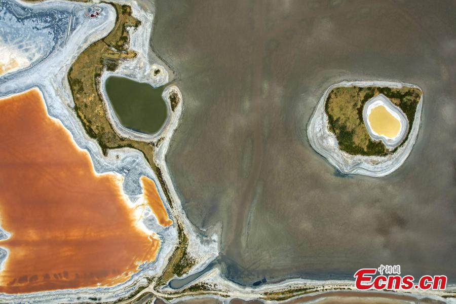 An aerial view of a colorful salt lake that resembles a giant palette in Yuncheng, north China's Shanxi Province, Sept. 26, 2024. (Photo/VCG)