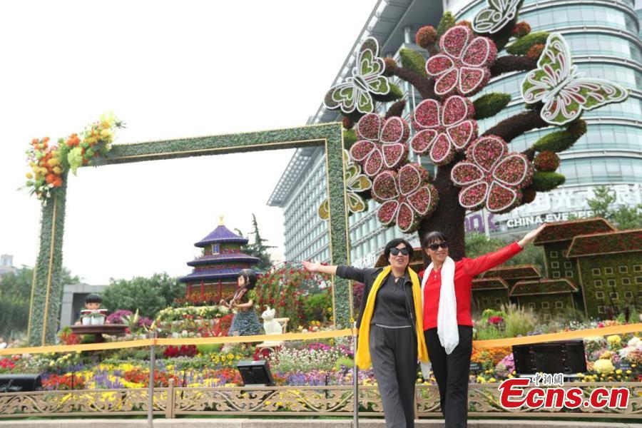 Tiananmen Square and Chang'an Avenue in Beijing have been decorated with flower displays ahead of the upcoming National Day holiday.
