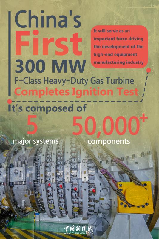 China's independently developed 300-megawatt F-class heavy-duty gas turbine ignited