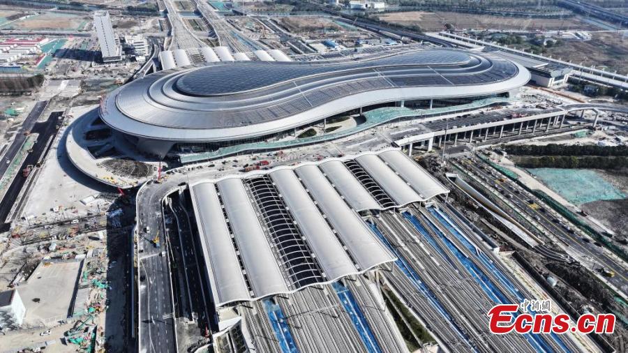 Aerial view of Shanghai Songjiang Railway Station, Dec. 16, 2024. (Photo: China News Service/Yin Liqin)