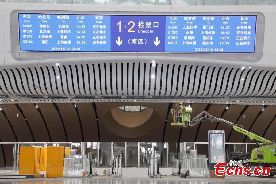 An interior view of Shanghai Songjiang Railway Station, Dec. 16, 2024. (Photo: China News Service/Yin Liqin)
