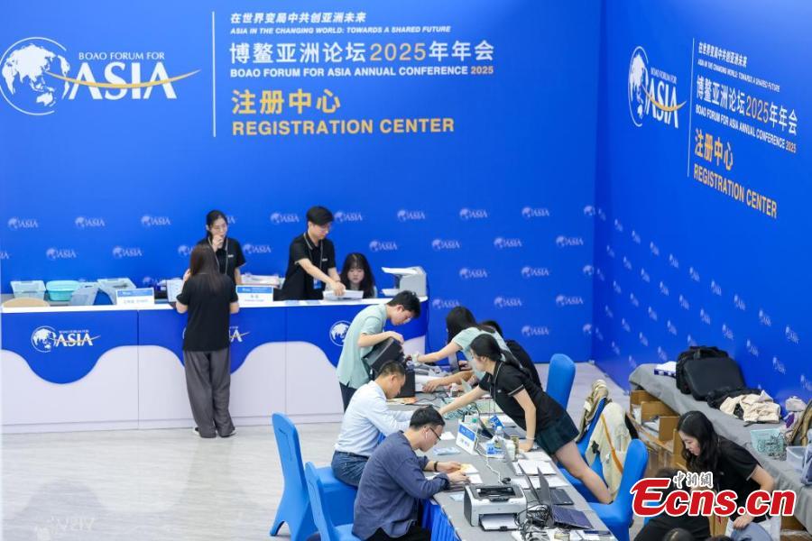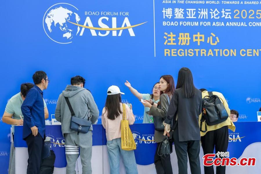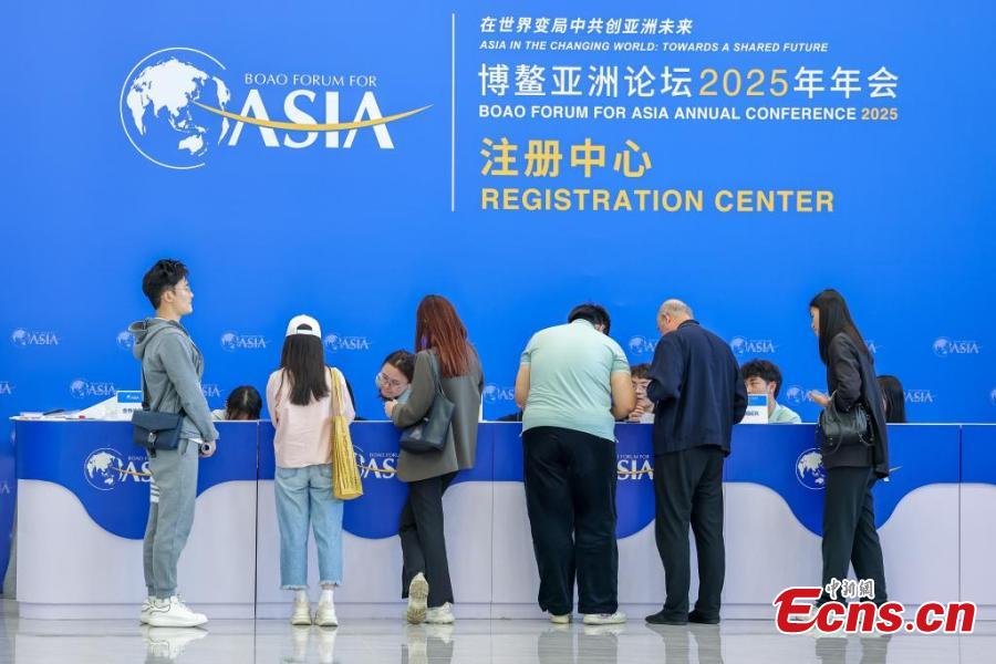 Participants register at the Registration Center for 2025 Boao Forum in south China's Hainan Province, March 23, 2025. (Photo: China News Service/Luo Yunfei)