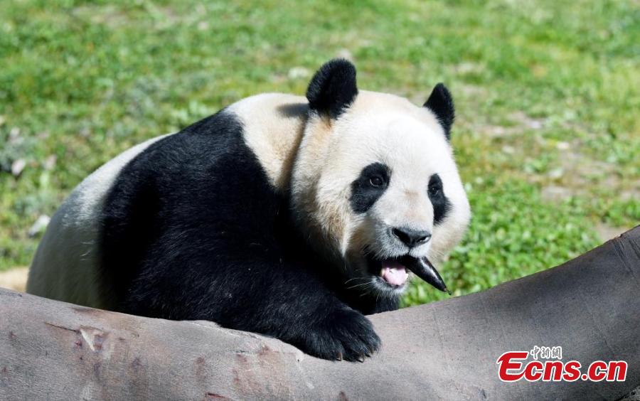 Giant panda Fu Bao plays at outdoor area of the Shenshuping giant panda base in Wolong National Nature Reserve in southwest China's Sichuan Province, March 25, 2025. (Photo: China News Service/An Yuan)