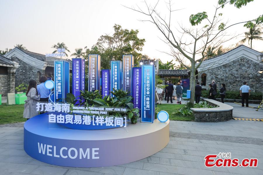 An exhibition showcasing the achievements of the Hainan Free Trade Port and Danzhou's urban development is held during the Asia (BFA) International Conference Center at Boao Dongyu Island Cultural Park, Boao, south China's Hainan Province, March 24, 2020. (Photo: China News Service/Luo Yunfei)