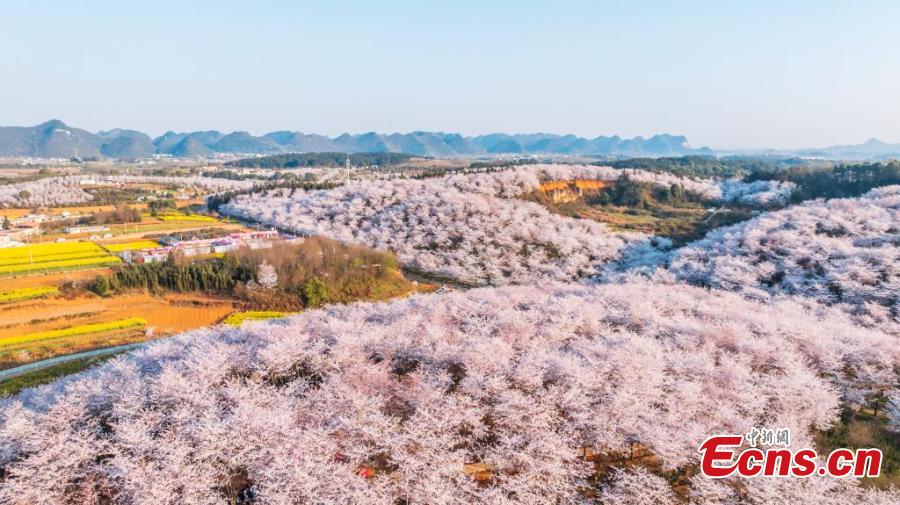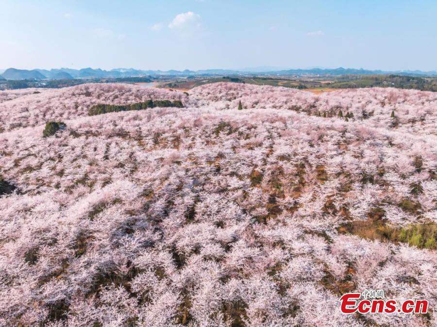 Covering an area of 24,000 mu (about 1,600 hectares), a cherry garden in the Guian New Area in southwest China's Guizhou Province has attracted a large flow of tourists during the blooming season of cherry blossoms.