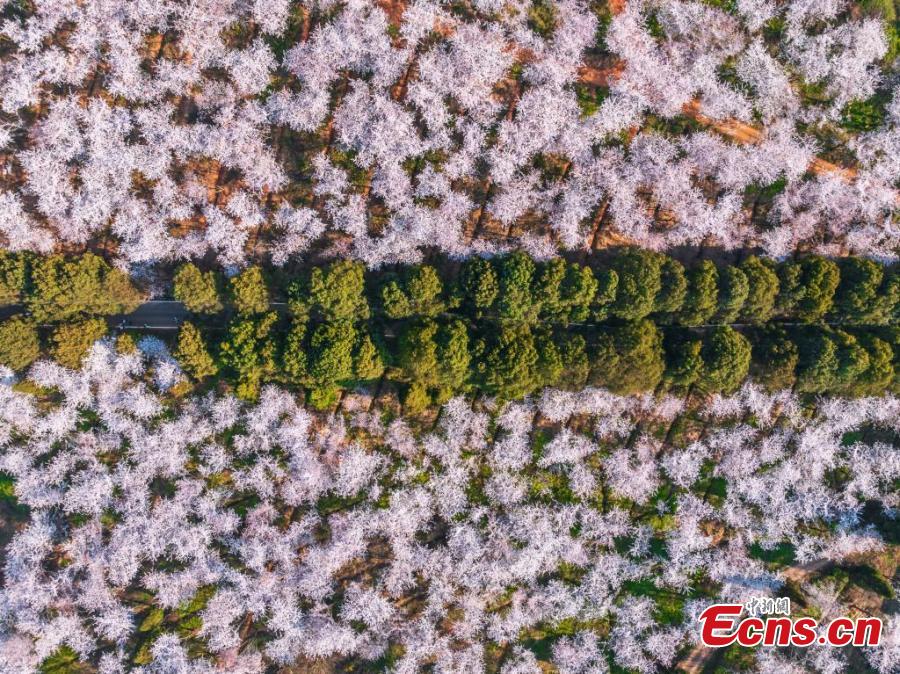 Incredible sea of blooming cherry blossoms at a cherry garden in Guian New Area of Guiyang, southwest China's Guizhou Province, March 25, 2025. (Photo provided to China News Service)