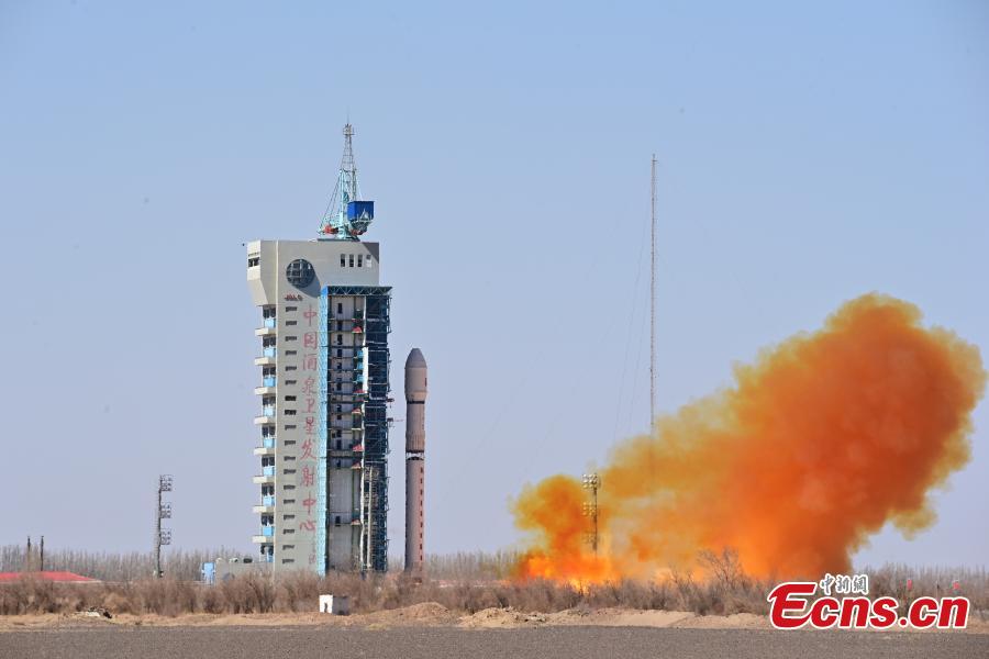 A Long March-2D carrier rocket carrying a test satellite for satellite internet technology blasts off from the Jiuquan Satellite Launch Center in northwest China, April 1, 2025. (Photo: China News Service/Wang Jiangbo)