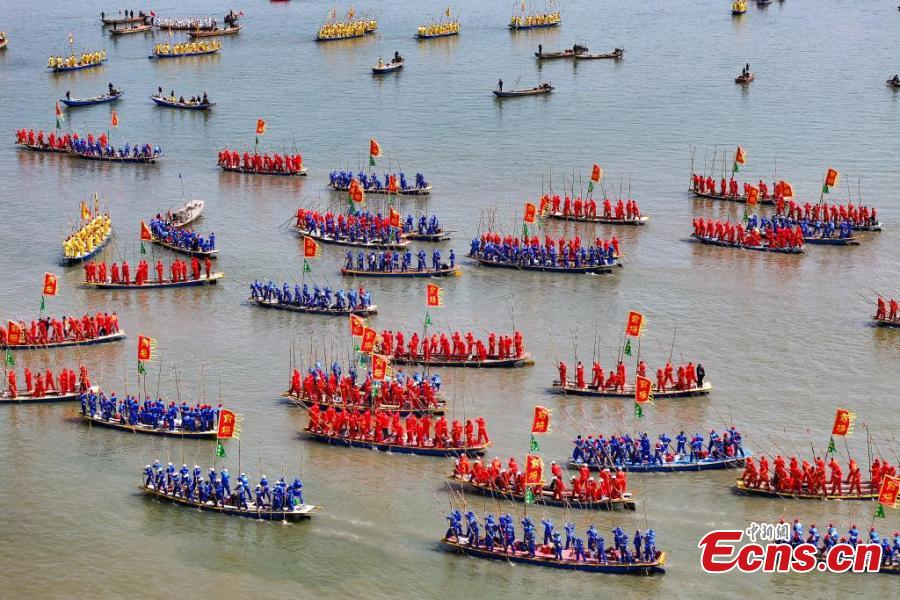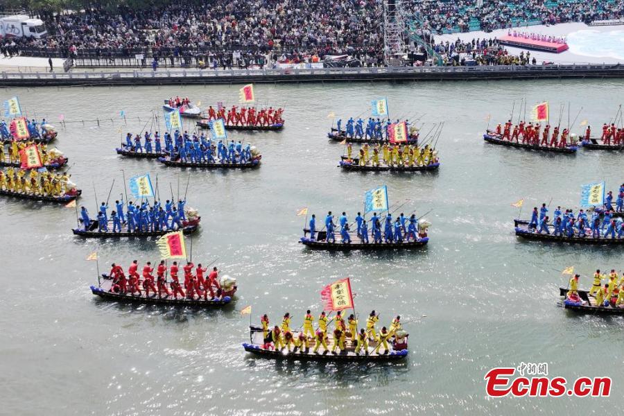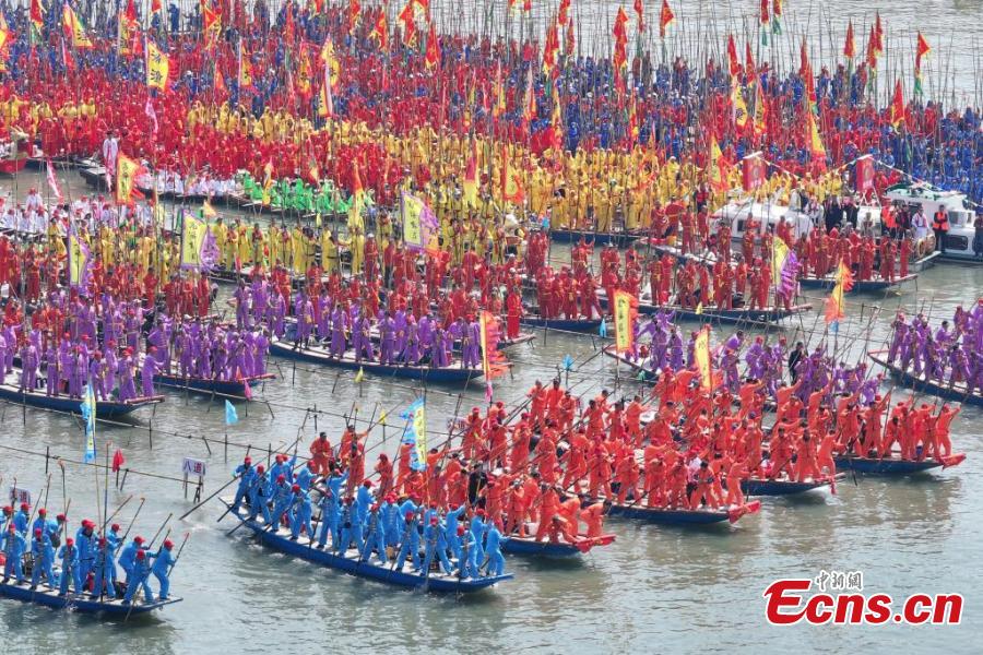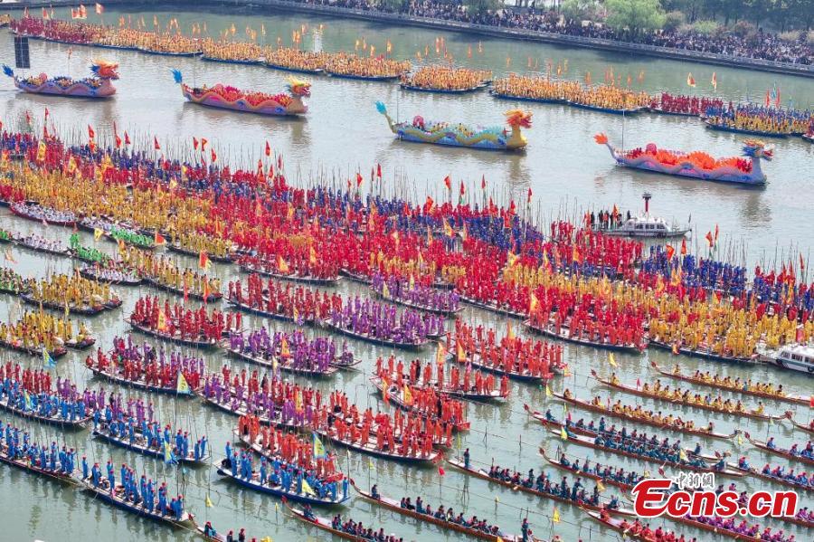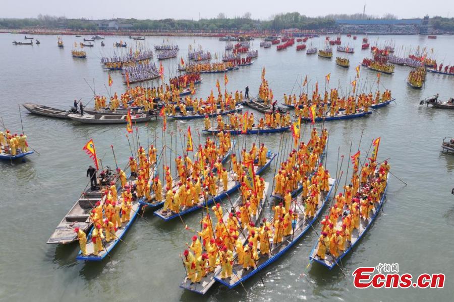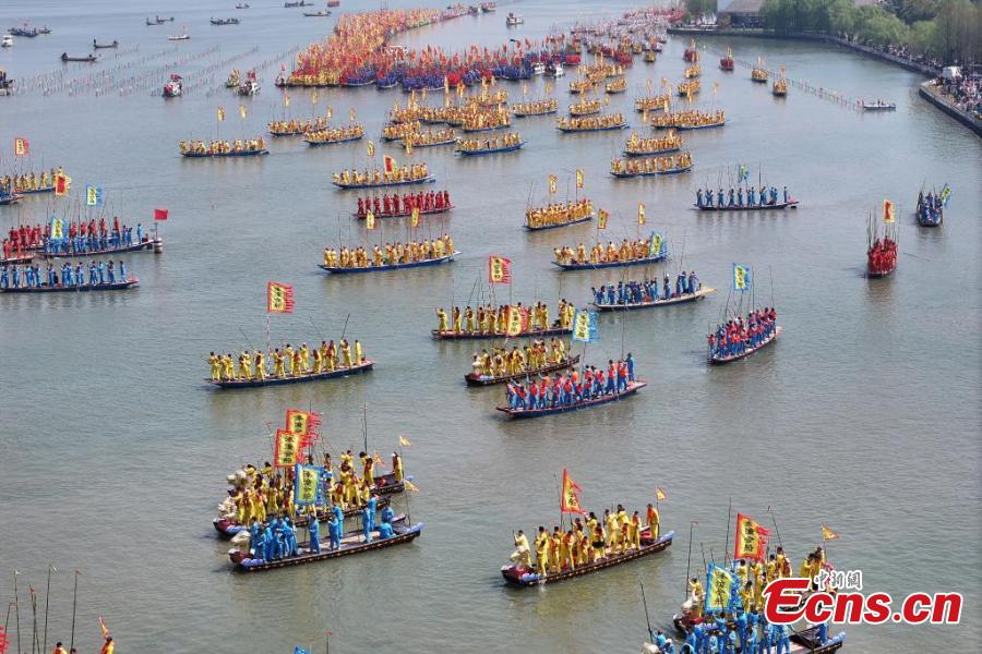 Over five hundred boats gathered on Sunday for the Qintong Boat Festival. Originating in the Southern Song Dynasty (1127-1279), it was a ceremony to commemorate war victims around the Qingming Festival. The festival was listed as the state-level intangible cultural heritage in 2008.