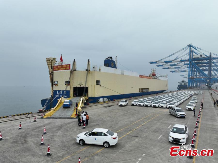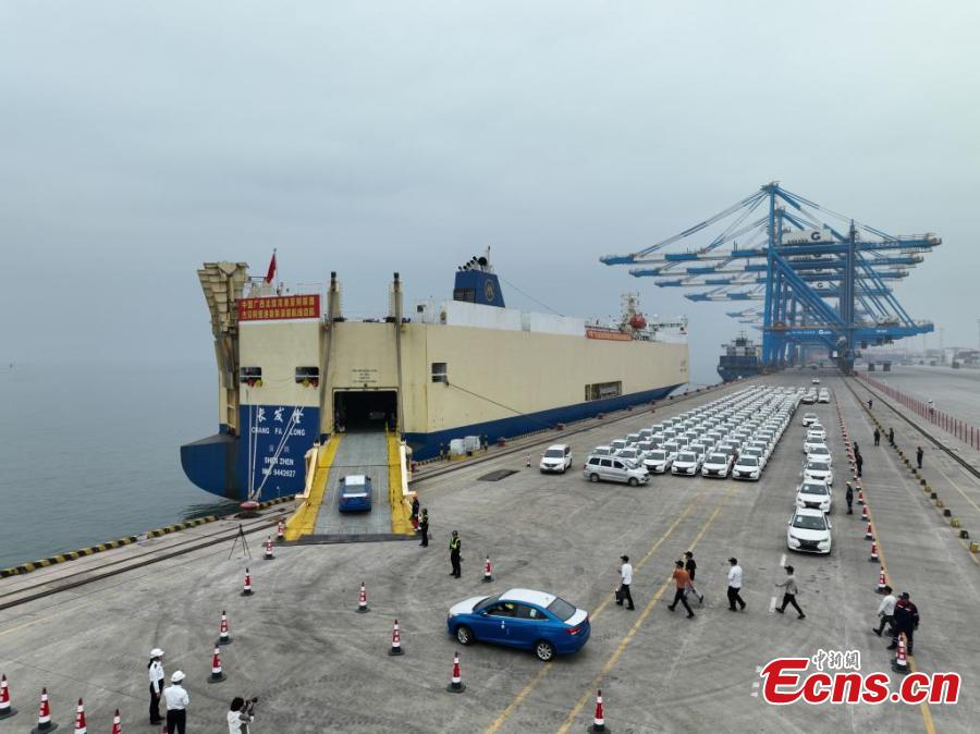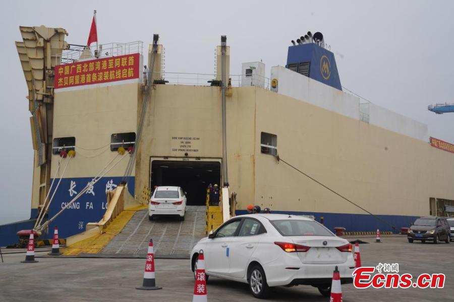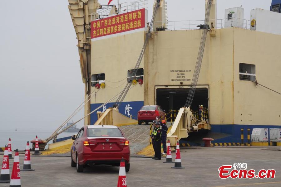 A vessel carrying more than 1,500 domestically produced vehicles departed from the Beibu Gulf Port on Monday, bound for the Jebel Ali Port in the United Arab Emirates. It marks the first ro-ro sea route at the Beibu Gulf Port, and first direct route between Beibu Gulf Port and Dubai Jebel Ali Port.