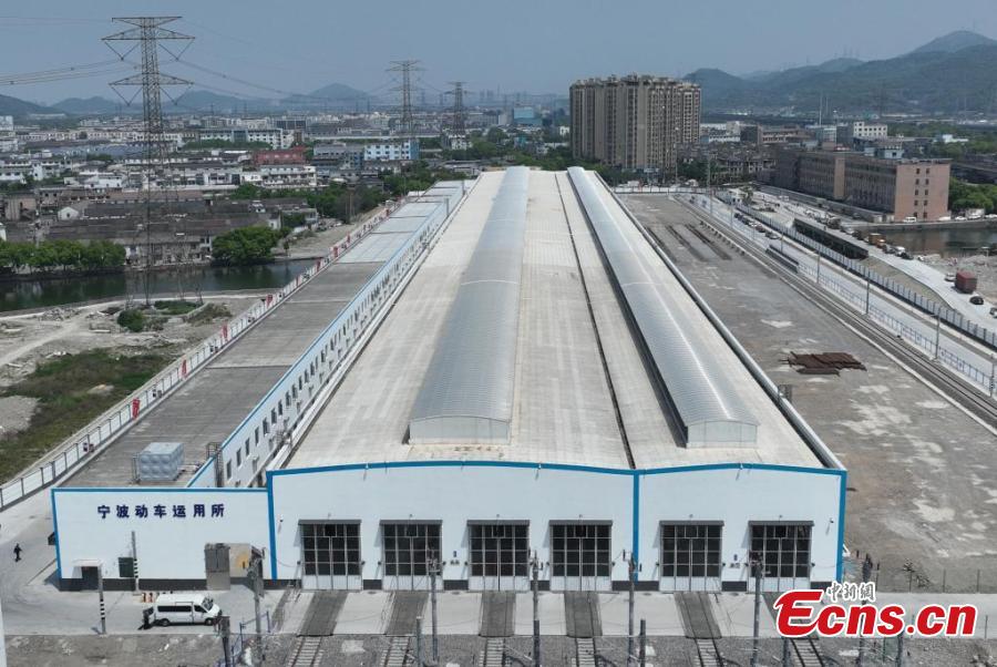 Aerial view of the high-speed train base in Ningbo, east China's Zhejiang Province, April 9, 2025. (Photo: China News Service/Wang Gang)